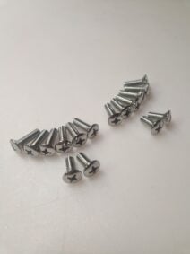 Set of 10 top quality nickel-chrome plated trim scews with 10 matching cup washers (rosettes). Available in widths 2.9 to 4.8 mm and lengths 13 to 25mm. Other sizes available upon request.